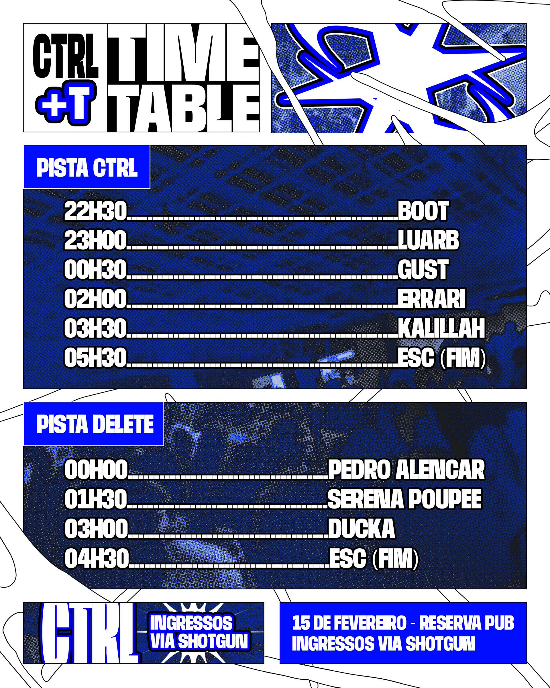 O CTRL é um novo selo de festa que surge com a proposta de transformar a experiência noturna em Petrolina - PE, trazendo uma identidade visual e conceitual inovadora. Inspirado na tecla "Ctrl" da computação, que modifica comandos para gerar novas funções, o selo representa a interseção entre música, tecnologia e cultura digital.